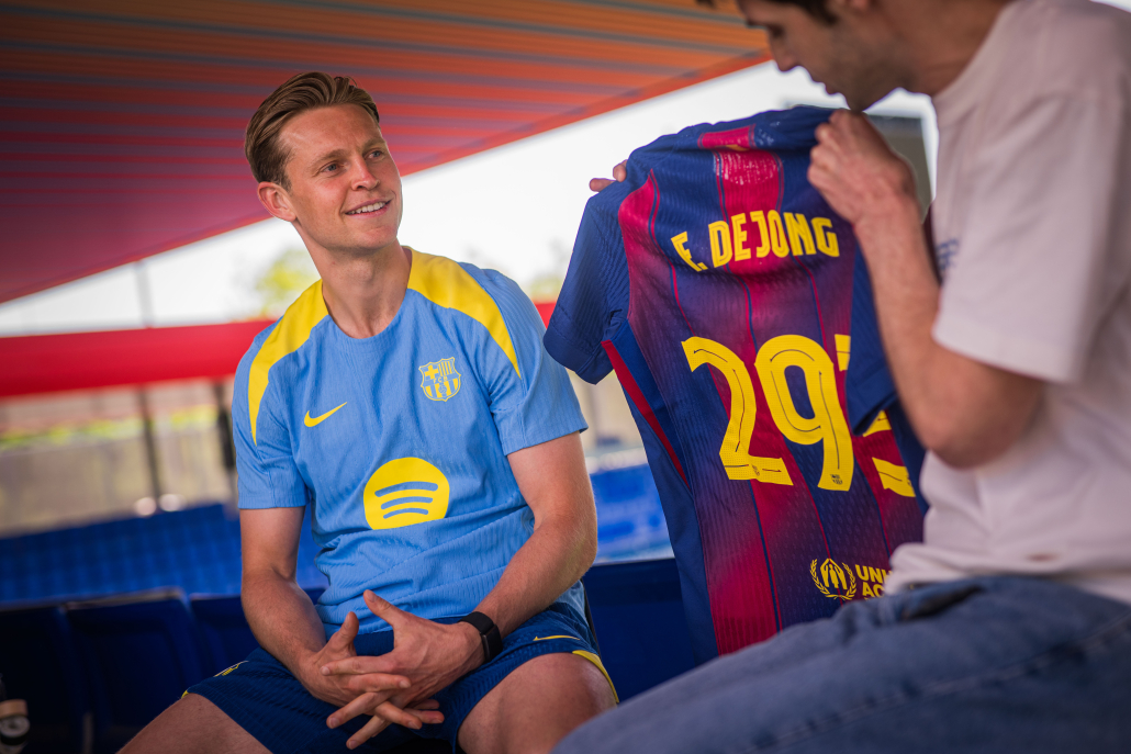 Escudo del FC Barcelona De Jong ‘disfrutando cada día como jugador del Barça’ El día después de convertirse en el jugador holandés con más partidos en la historia del club, el centrocampista responde a las preguntas de los aficionados en el canal de Youtube Primer Equipo Fecha de publicación Hace 1 hora