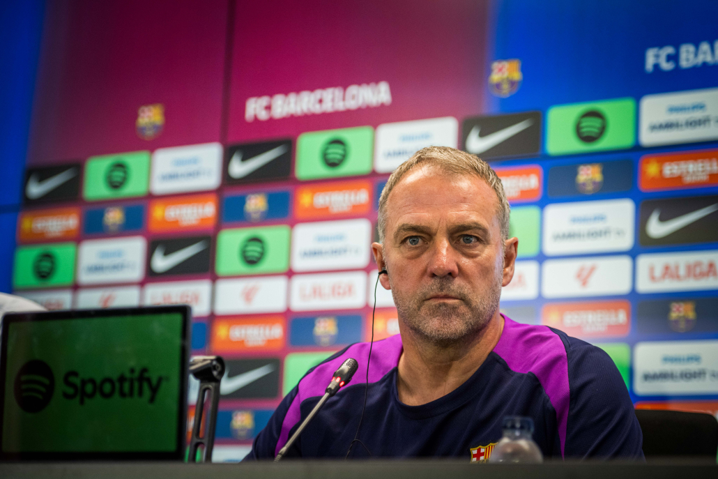 Escudo del FC Barcelona ‘No podemos cometer ningún error’ El técnico alemán recuerda que “el Getafe defiende muy bien” y analiza la situación del equipo sin Lamine Yamal en este tramo final de LaLiga Primer Equipo Fecha de publicación Hace 46 min