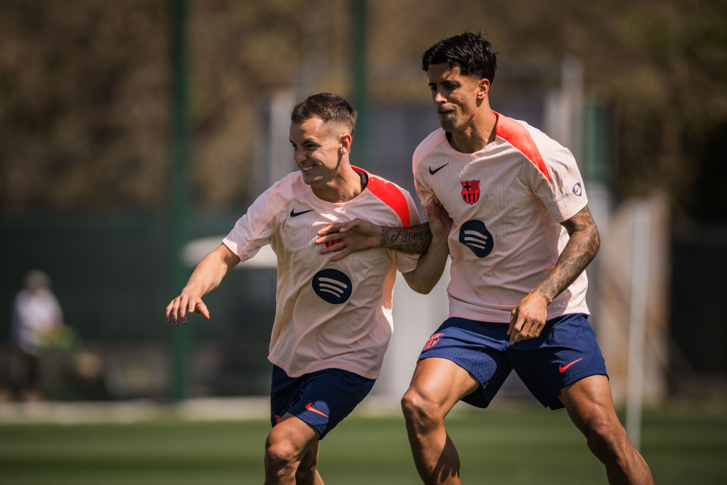 Escudo del FC Barcelona Recuperación tras la victoria La mañana siguiente de derrotar al Celta por 1-0, la plantilla (incluido Cancelo) vuelve a los entrenamientos Primer Equipo Fecha de publicación Hace 26 Minutos