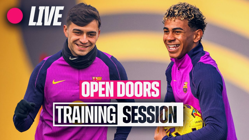 FC. Barcelona: label.aria.barcelonabadge EN VIVO: Entrenamiento a puertas abiertas La vuelta blaugrana al trabajo con una sesión de puertas abiertas en el Estadi Johan Cruyff retransmitida en directo por el canal de YouTube del Club Primer Equipo label.aria.clock Hace 1 hora
