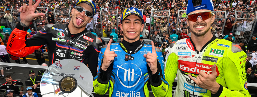 Fue un día mágico para toda la fábrica Aprilia, con dos de las máquinas construidas por Noale en el podio después de que Marco Bezzecchi (Aprilia Racing) luchara por el tercer puesto bajo la bandera a cuadros. También fue otra oportunidad para Aprilia y Massimo Rivola de revivir algunas de las emociones que sintieron desde su primera victoria en MotoGP en Termas de Río Hondo en 2022 mientras se unían a las celebraciones.
