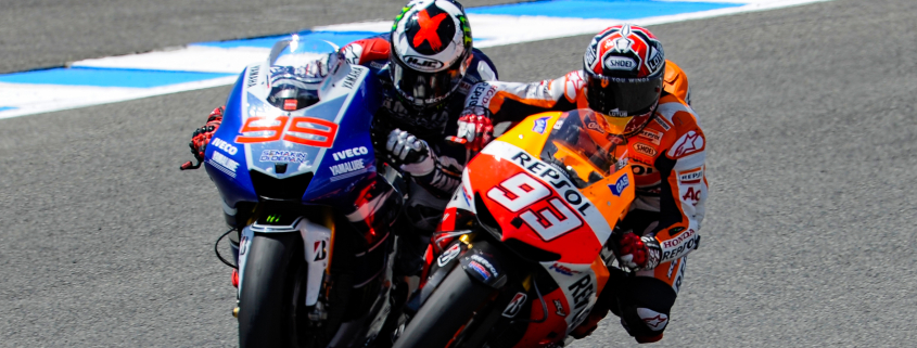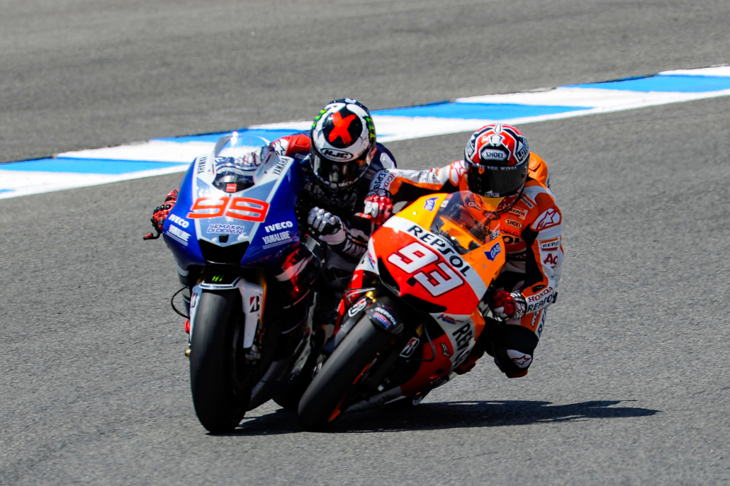 Marc Márquez ya estaba causando sensación en 2013, y después de convertirse en ganador del Gran Premio en Estados Unidos, la siguiente ronda fue una oportunidad para respaldar sus feroces dos primeras rondas. En cambio, fue su compañero de equipo Dani Pedrosa quien logró el tercer triunfo en tres Grandes Premios, pero detrás se estaba gestando un drama. Como en 1996 y 2005, pero esta vez para P2, la curva 13 causó revuelo; Lorenzo ocupaba el segundo lugar al entrar, pero nuevamente, con la puerta lo suficientemente abierta, Márquez saltó y conectó con el #99. P2 para Márquez, mientras que el gesto de Lorenzo en el Parque Cerrado mostraba su enfado por la situación.