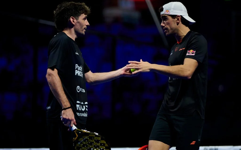 El partido que cerró el programa de cuartos de final del Premier Padel Dubái P1 Era lo más esperado, porque los que hoy eran rivales, dentro de unos días serán compañeros. juan lebron Y Franco StupaczukEstos serán los dos jugadores que compartirán pista al menos una vez más: el español y el argentino ganaron 4-6 6-3 7-6 Martín Di Nenno Y Leo Augsburgoquienes hoy finalizan su participación en el torneo. Pero para Lebrón y Stupa mañana será la semifinal contra Fedé Chingotto Y Cerveza Galánquien en 1h47 eliminó Eduardo Alonso Y Juan Tello por 7-6 y 6-4. En lo más alto de la tabla masculina, no antes de las 8 p.m. hora local (17 CET), Arturo Coello Y Agustín Tapia — que en 46 minutos vencieron por 6-1 y 6-2 Javi Lealy Lucas Bergamini — se enfrentarán a la gran sorpresa de la semana, Javi Garrido Y Lucas Campagnolocabeza de serie número 13 y ganadora en tres sets ante Momo González Y Fran Guerrero (6-4 6-7 y 6-4 en 2h17).