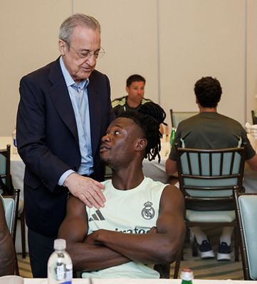 Después de presenciar el entrenamiento de este lunes, el presidente Florentino Pérez acudió al hotel de concentración del equipo en Palm Beach para saludar al cuerpo técnico y a los jugadores. El Real Madrid permanece concentrado antes de afrontar los octavos de final del Mundial de Clubes de la FIFA contra la Juventus, en el Hard Rock Stadium de Miami (martes, 21:00 h española; 15:00 h local).
