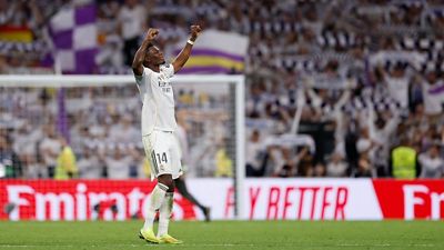 Aurélien Tchouameni completó un Clásico soberbio y fue ovacionado por el Bernabéu tras un partido que disputó de principio a fin. Al término del encuentro habló con Realmadrid TV e indicó: «Sabíamos que teníamos que dar todo. Hemos hecho un buen partido de todo el equipo y hemos merecido la victoria. El entrenador ha hecho un trabajo increíble con el plan de partido. Hemos hecho todo lo que queríamos hacer, presionar fuerte todos juntos y cuando recuperáramos el balón intentar crear ocasiones. Lo hemos hecho y estamos muy contentos”.