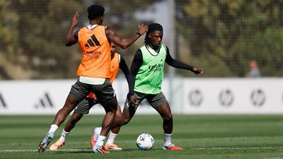 El líder de la Liga llevó a cabo en la Ciudad Real Madrid su último entrenamiento antes del derbi. Los de Xabi Alonso se enfrentarán al Atlético en el Metropolitano en la séptima jornada de Liga (sábado, 16:15 h; Orange TV y Dazn).