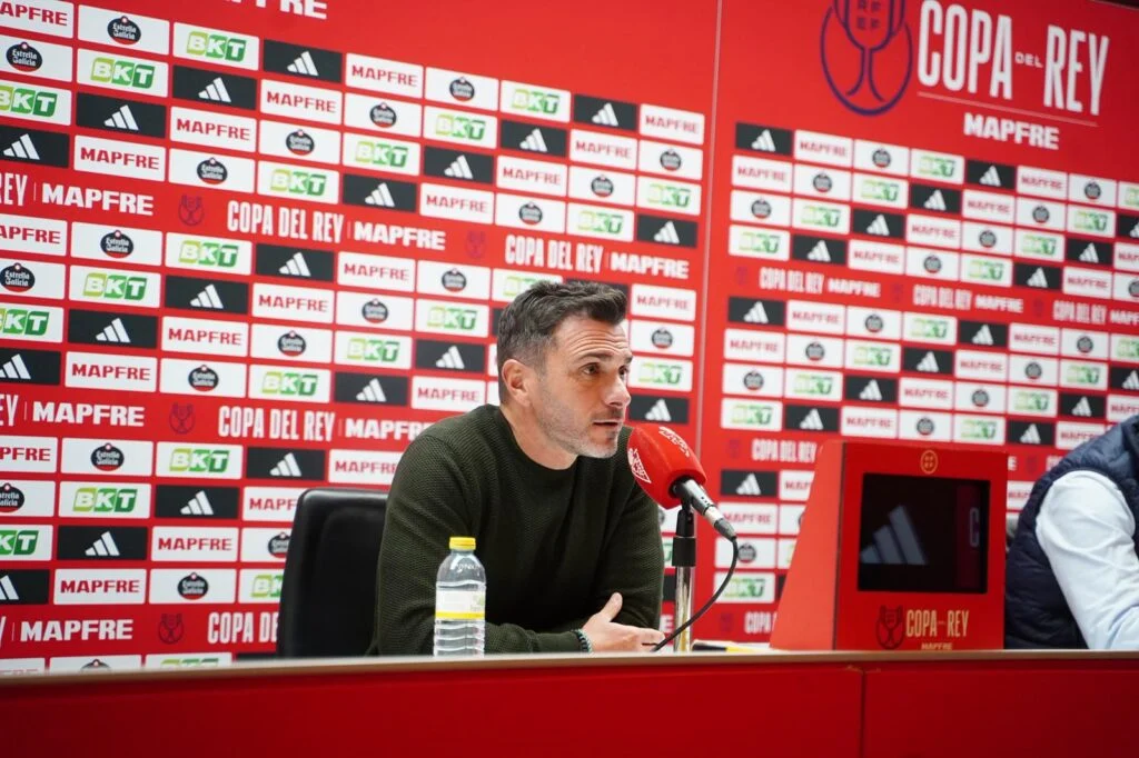El técnico grana comenzó hablando sobre la fidelidad del estilo de juego del equipo en este partido. Aseguró que «estamos metiendo semillas de lo que queremos. Teníamos enfrente un gran equipo contra el que en la primera parte estuvimos muy bien y en la segunda ellos tuvieron más control. El trabajo de todos fantástico y ahora hay que pensar en el domingo».