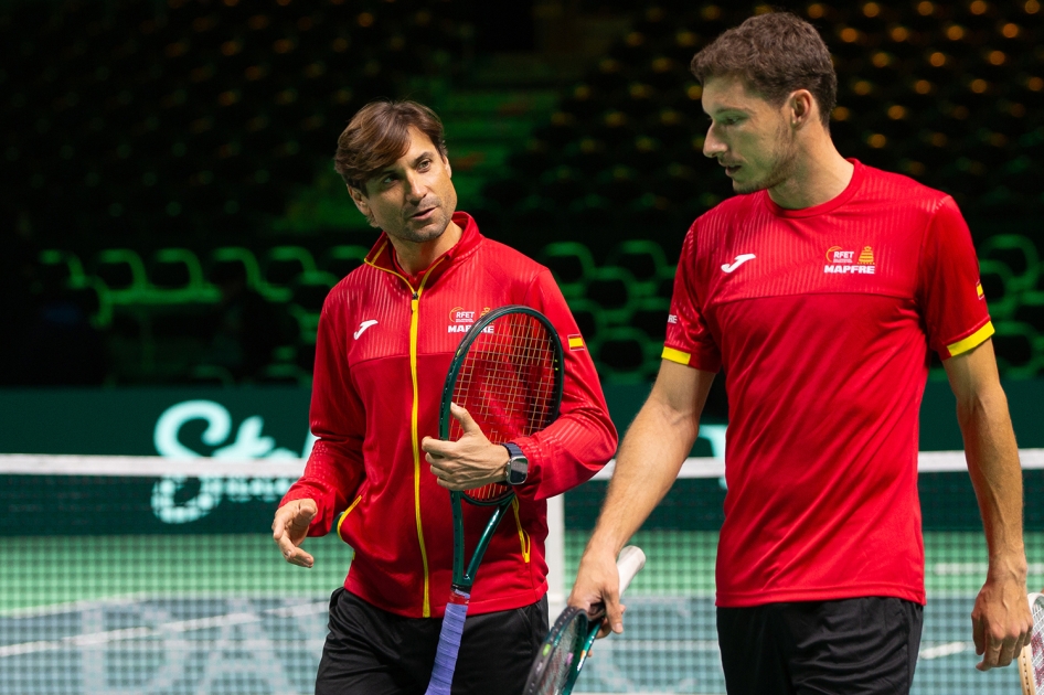 Allá Selección Española MAPFRE Tenis Realicé este sábado durante su primer entrenamiento en el Súper Arena de Tenis de la Feria de Bolonia, Italia, escenario que codirigió el Final 8 de la Copa Davis 2025 a partir del próximo mes. Jaume Munar y Pablo Carreño fueron los primeros en recorrer la pista central junto a Pedro Martínez. En los próximos días se incorporaron Marcel Granollers y Carlos Alcaraz.